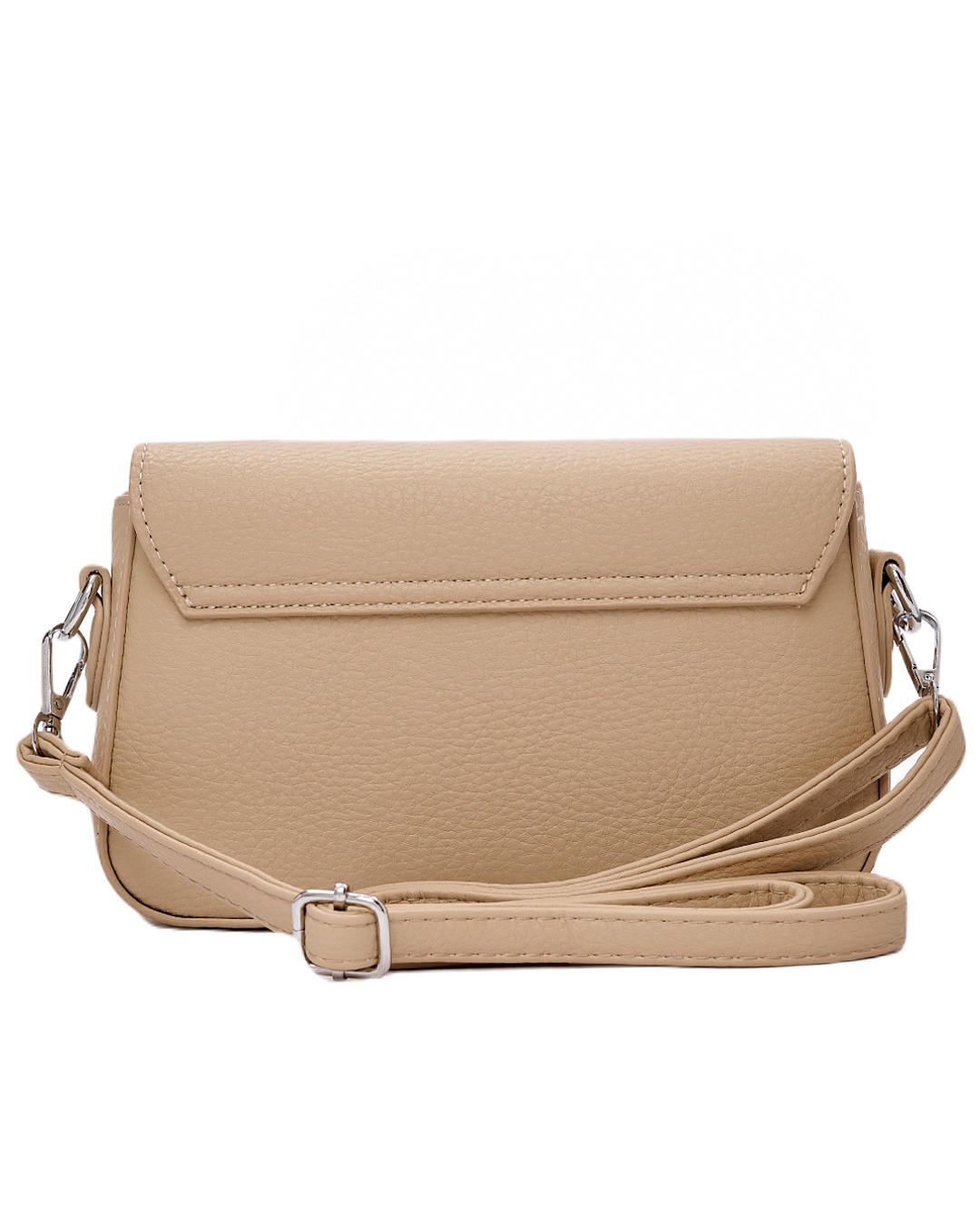 Τσάντα χιαστί από υψηλής ποιότητας τεχνόδερμα!Αποτελείται από έναν κύριο χώρο που κλείνει πρώτα με φερμουάρ κ έπειτα με καπάκι που διαθέτει μαγνητικό κούμπωμα!Εσωτερικά διαθέτει βοηθητικές θήκες.Επίσης διαθέτει αποσπώμενο-ρυθμιζόμενο λουράκι.