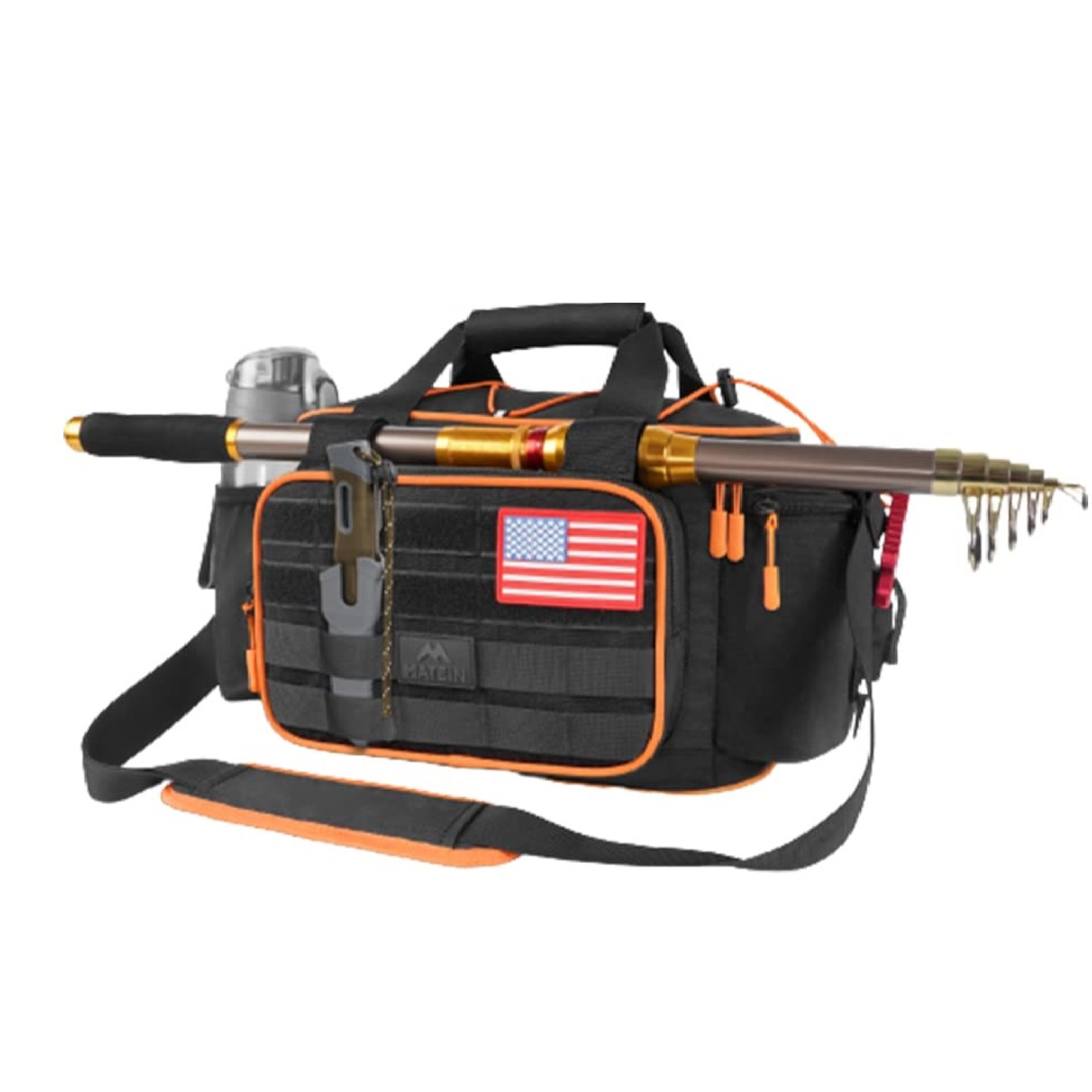– ΤΣΑΝΤΑ ΜΕ ΨΥΓΕΙΟ: Σχεδιασμένη με Cooler διαμέρισμα, η τσάντα ψαρέματος μπορεί να αποθηκεύσει τα τρόφιμα, τα ποτά, τα φρούτα, το μεσημεριανό γεύμα ή τα σνακ σας για το ψάρεμα σας. Με επένδυση από μεμβράνη αλουμινίου και μόνωση από βαμβακερό μαργαριτάρι, ο ψυχρότερος χώρος μπορεί να κρατήσει το φαγητό σας κρύο για ώρες. Το σύστημα Molle στο μπροστινό μέρος του ψυγείου παρέχει γρήγορη πρόσβαση στην αποθήκευση και χρήση μαχαίρι, πένσα ψαρέματος και άλλα εργαλεία για ψάρεμα