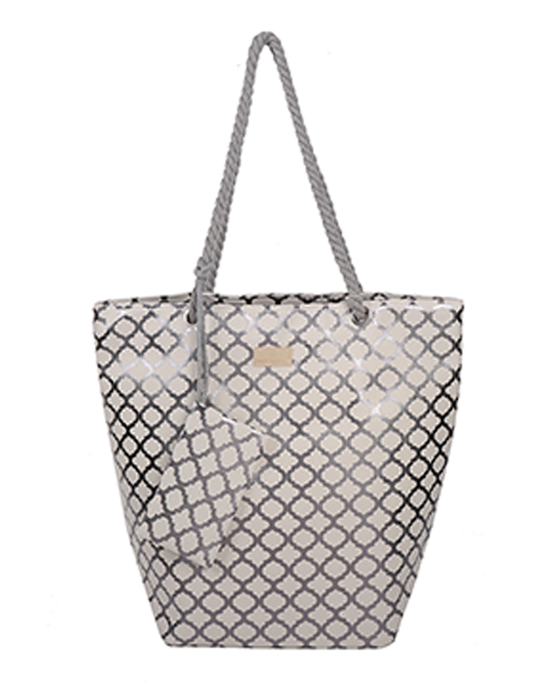 Ανακαλύψτε την ιδανική τσάντα θαλάσσης, κατασκευασμένη από ανθεκτικά υλικά, ιδανική για τις καλοκαιρινές σας εξορμήσεις. Χωράει όλα τα απαραίτητα για την παραλία και διαθέτει πρακτικές θήκες για εύκολη οργάνωσηκαθώς κ ένα αποσπώμενο τσαντάκι που κλείνει με φερμουαρ.Στυλάτη και λειτουργική, αυτή η τσάντα θα γίνει ο απόλυτος καλοκαιρινός σας σύντροφος.