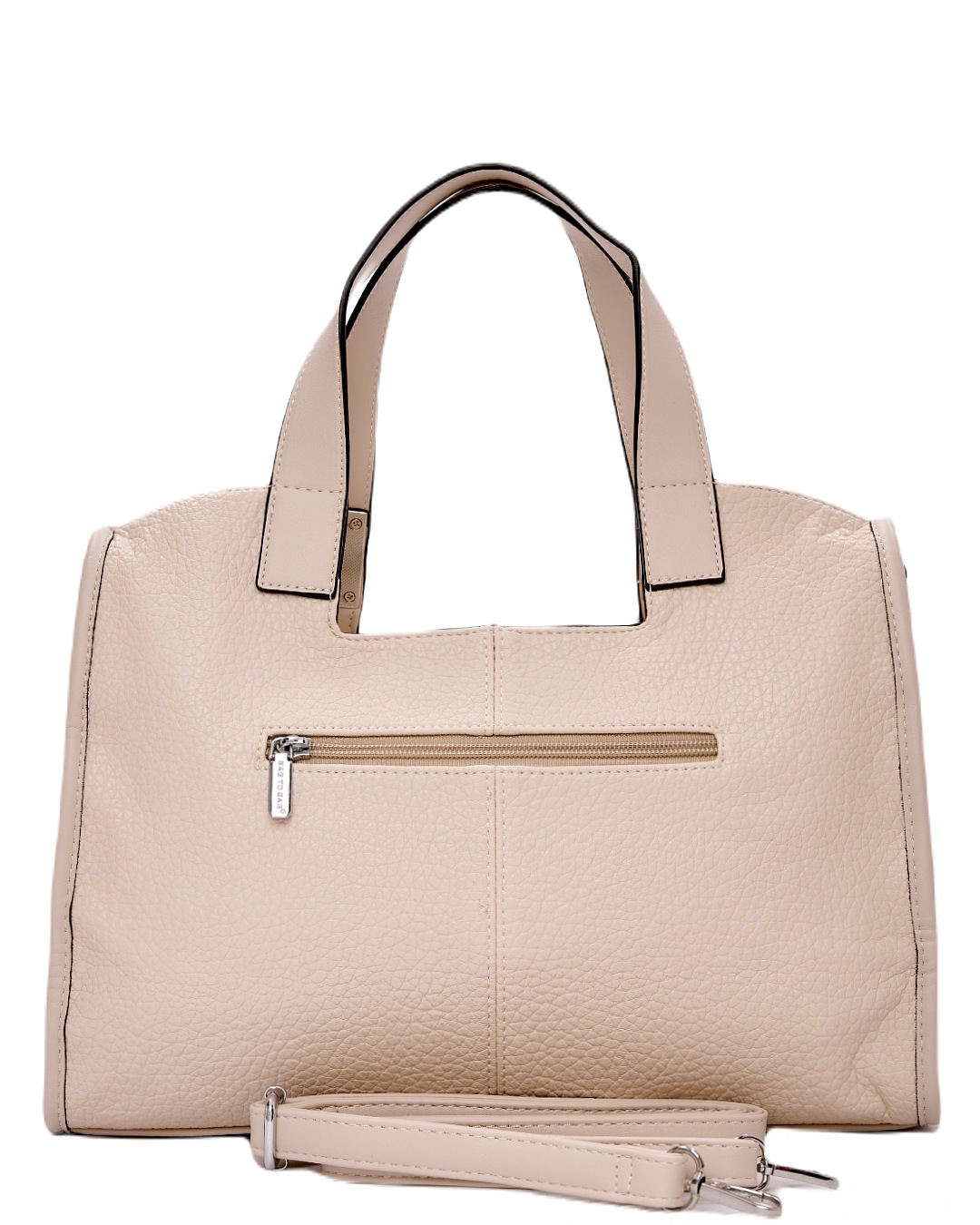 Τσαντα ώμου από υψηλής ποιότητας τεχνόδερμα.Αποτελείται από έναν κύριο χώρο που κλείνει με φερμουαρ.Στην πίσω όψη διαθέτει βοηθητική θήκη με φερμουάρ.Επίσης διαθέτει αποσπώμενο-ρυθμιζόμενο λουράκι.