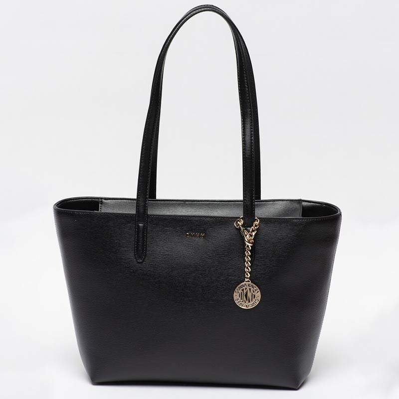 Τσάντα ώμου από γνήσιο δέρμα με διακοσμητικό μεταλλικό μπρελόκ