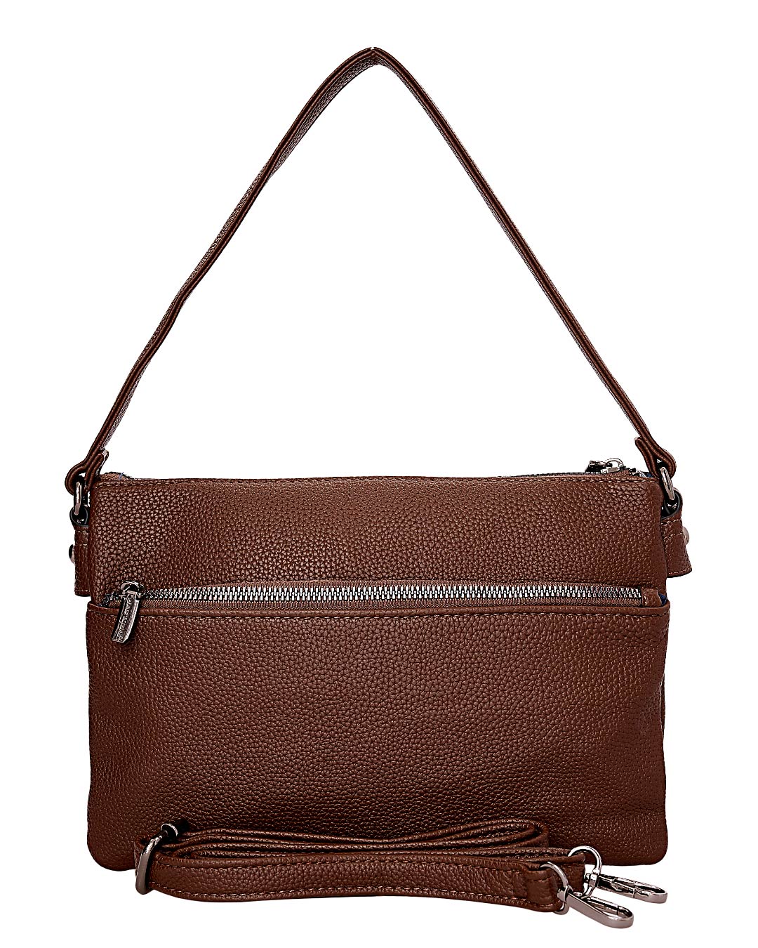 Τσάντα ώμου από υψηλής ποιότητας τεχνόδερμα.Αποτελείται από έναν κύριο χώρο που κλείνει με φερμουάρ.Εξωτερικά διαθέτει στην μπροστινή όψη θήκη με φερμουάρκαι στην πίσω όψη βοηθητική τσέπη που κλείνει με φερμουάρ.Διαθέτει ρυθμιζόμενο-αποσπώμενο λουράκι.