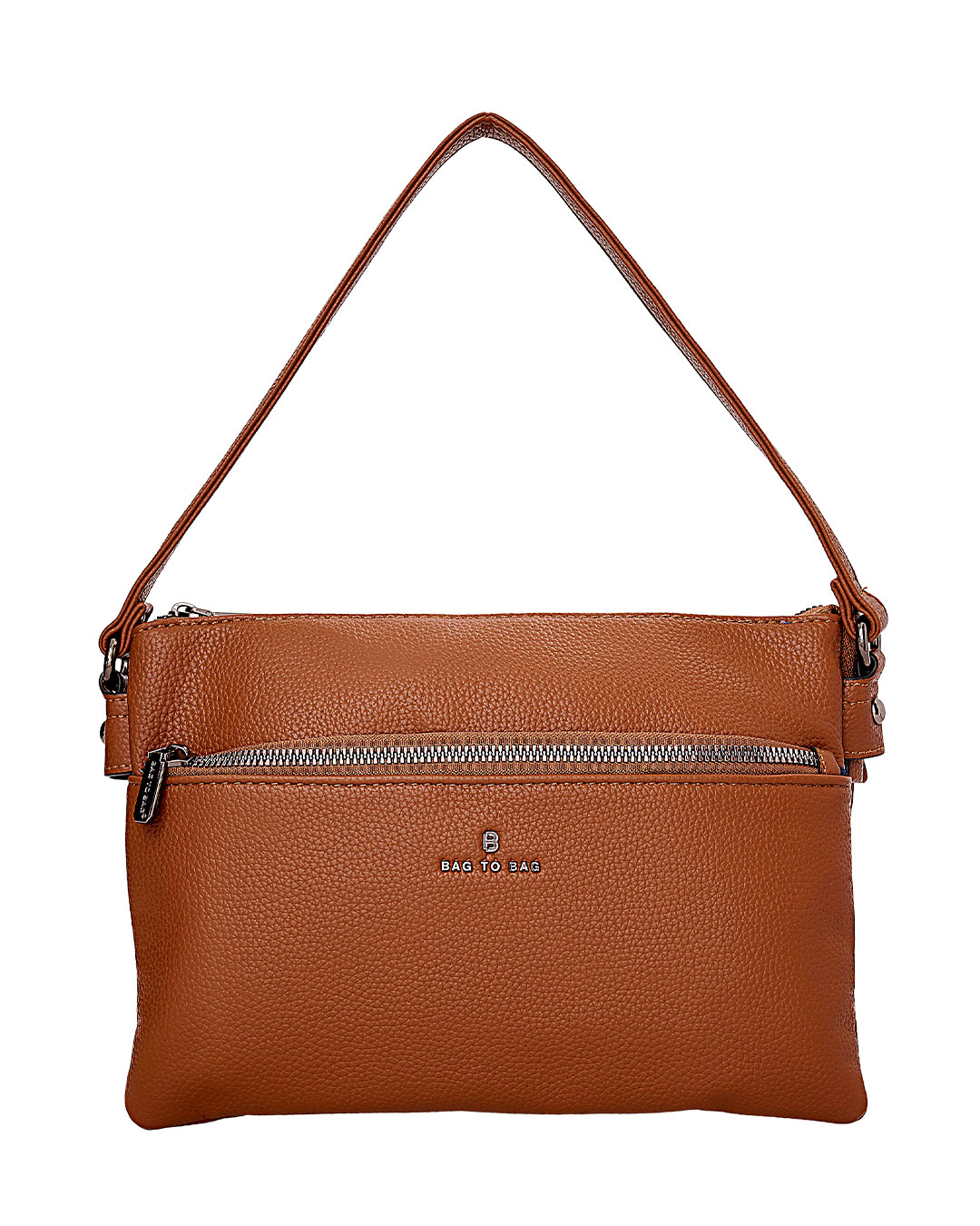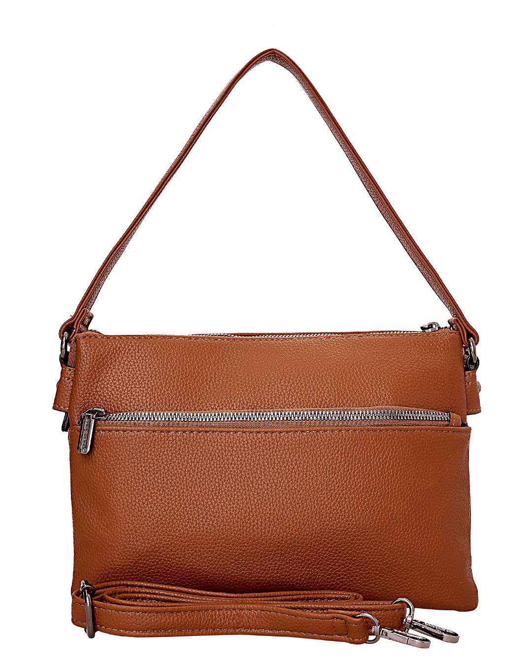 Τσάντα ώμου από υψηλής ποιότητας τεχνόδερμα.Αποτελείται από έναν κύριο χώρο που κλείνει με φερμουάρ.Εξωτερικά διαθέτει στην μπροστινή όψη θήκη με φερμουάρκαι στην πίσω όψη βοηθητική τσέπη που κλείνει με φερμουάρ.Διαθέτει ρυθμιζόμενο-αποσπώμενο λουράκι.