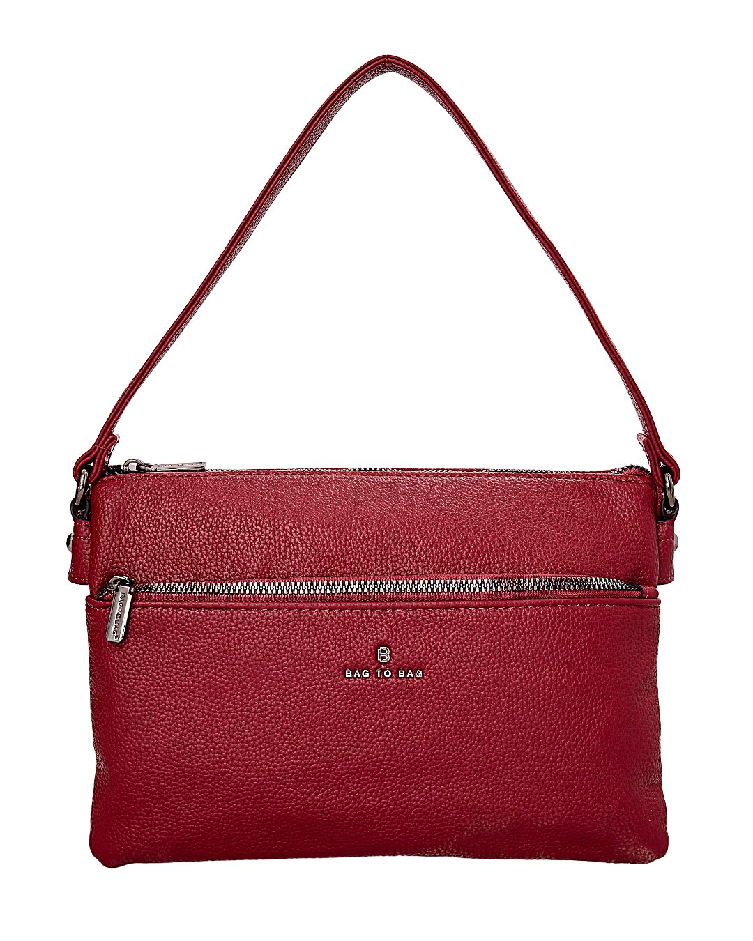 Τσάντα ώμου από υψηλής ποιότητας τεχνόδερμα.Αποτελείται από έναν κύριο χώρο που κλείνει με φερμουάρ.Εξωτερικά διαθέτει στην μπροστινή όψη θήκη με φερμουάρκαι στην πίσω όψη βοηθητική τσέπη που κλείνει με φερμουάρ.Διαθέτει ρυθμιζόμενο-αποσπώμενο λουράκι.
