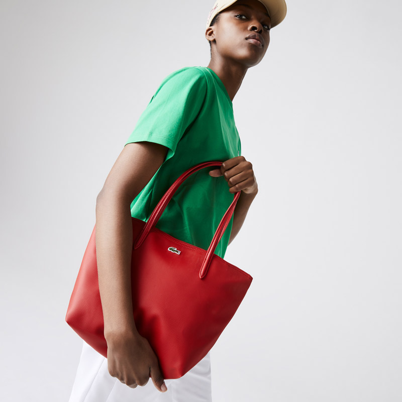 Γυναικεία τσάντα ώμου από τη Lacoste από PVC σε κόκκινο χρώμα. Διαθέτει μία κεντρική θήκη που κλείνει με φερμουάρ και μία εσωτερική για μικροαντικείμενα όπως κινητό και κλειδιά. Μια κομψή και πρακτική τσάντα που μπορείτε να την κρατάτε είτε στον ώμο είτε στο χέρι.
