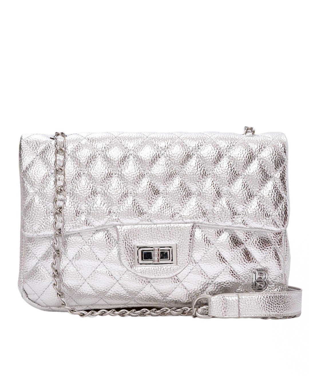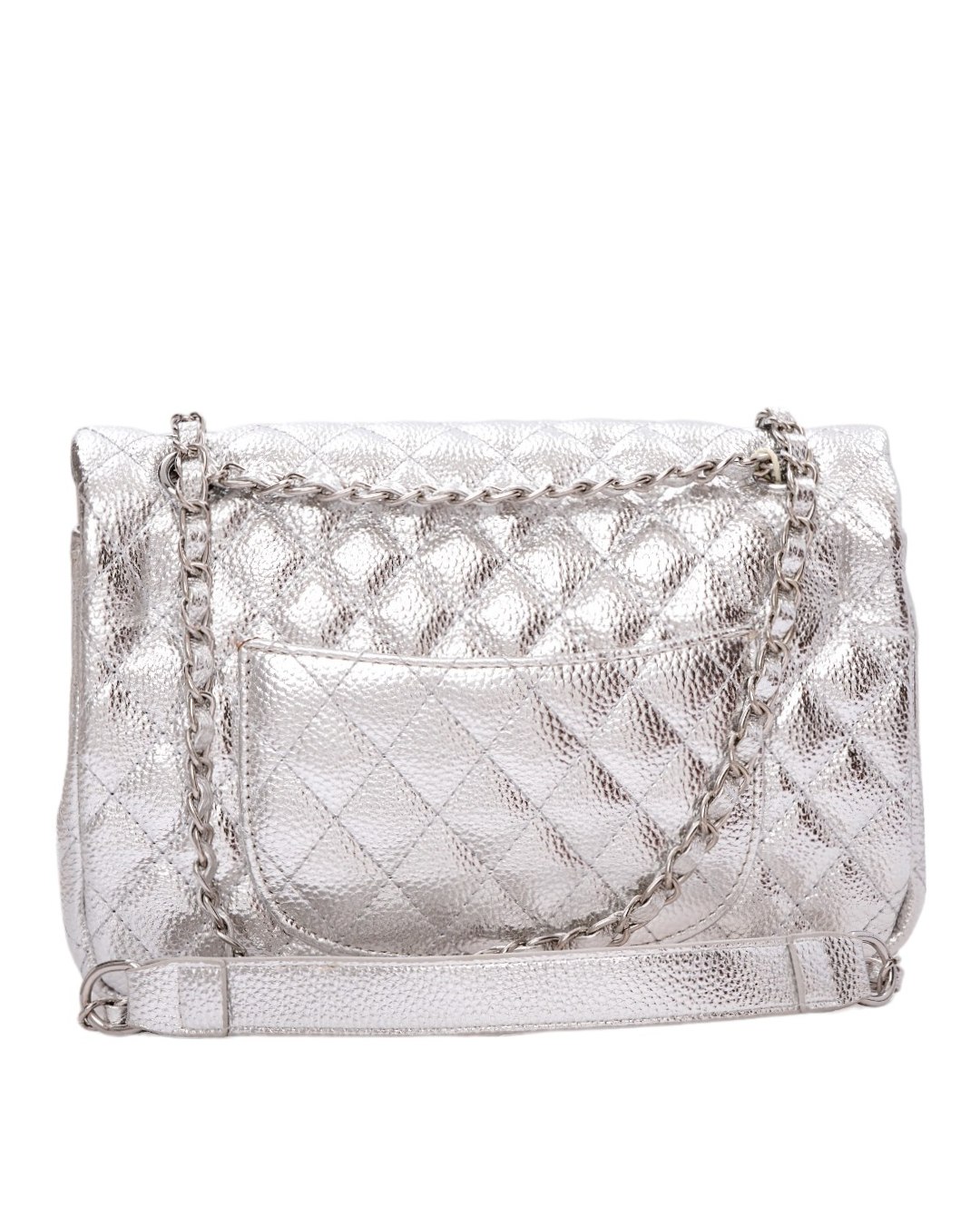 Τσάντα ώμου με αλυσίδα SW8902 - Ασημί