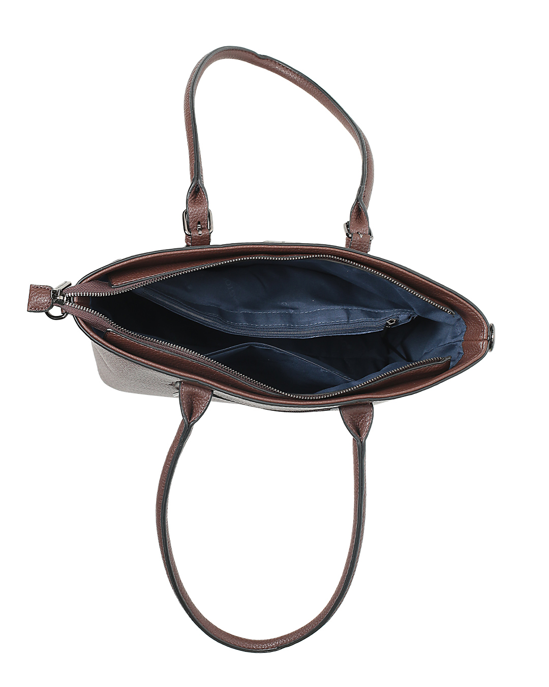Τσάντα ώμου από υψηλής ποιότητας τεχνόδερμα.Αποτελείται από έναν κύριο χώρο που κλείνει με φερμουάρ.Εσωτερικά διαθέτει στην μπροστινή όψη βοηθητικές θήκες καιπίσω όψη βοηθητική θήκη με φερμουάρ.Εξωτερικα διαθέτει στην στην πίσω θήκη που κλείνει με φερμουάρ.Διαθέτει ρυθμιζόμενο-αποσπώμενο λουράκι !