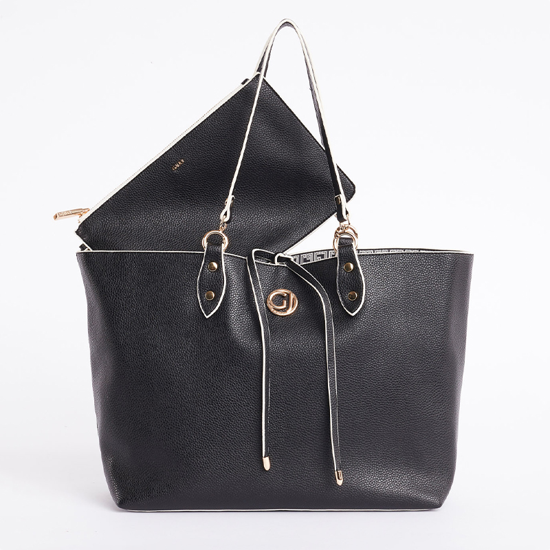 Αναστρέψιμη shopper bag Gaudi από οικολογικό δέρμα με τη μία μονόχρωμη πλευρά και την άλλη με γράμματα GJ παντού. Μια άνετη τσάντα που θα ταιριάξει απόλυτα σε κάθε σας εμφάνιση.