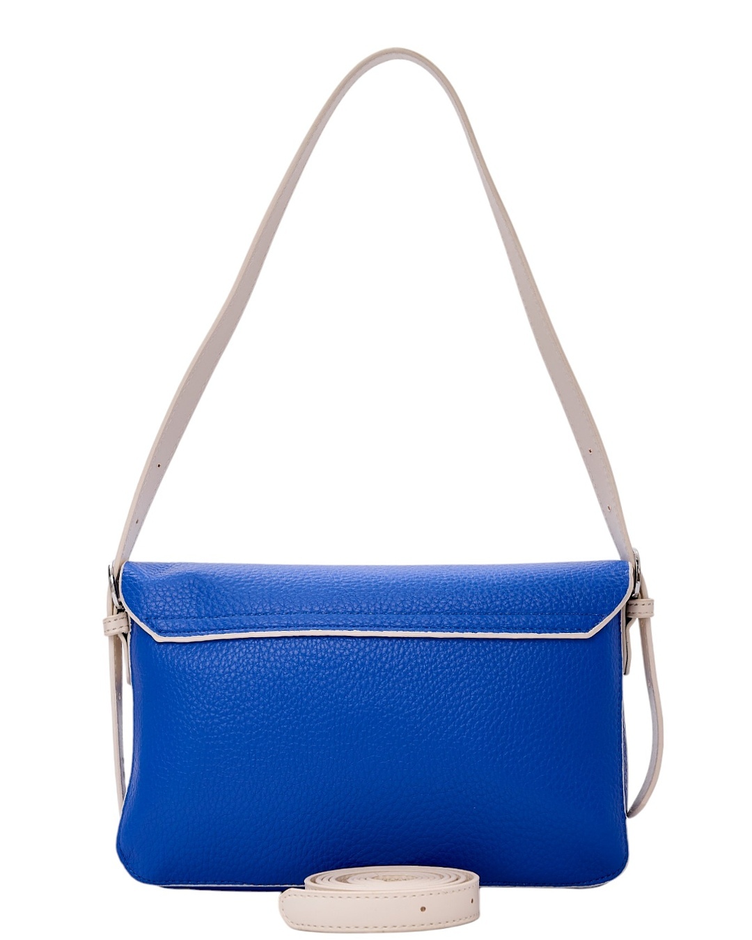 Τσάντα ώμου από υψηλής ποιότητας τεχνόδερμα.Αποτελείται από έναν κύριο χώρο που κλείνει με φερμουάρ κ έπειτα με καπάκι που διαθέτει περίτεχνο κούμπωμα.Εσωτερικά διαθέτει στην εμπρός κ πίσω όψη βοηθητικές θήκες.Επίσης διαθέτει ρυθμιζόμενο λουράκι.
