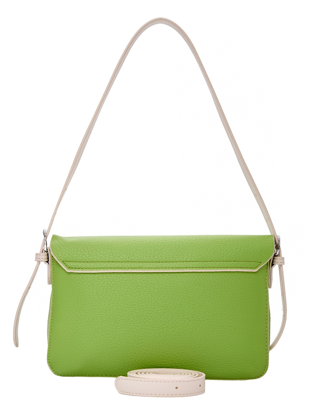 Τσάντα ώμου από υψηλής ποιότητας τεχνόδερμα.Αποτελείται από έναν κύριο χώρο που κλείνει με φερμουάρ κ έπειτα με καπάκι που διαθέτει περίτεχνο κούμπωμα.Εσωτερικά διαθέτει στην εμπρός κ πίσω όψη βοηθητικές θήκες.Επίσης διαθέτει ρυθμιζόμενο λουράκι.