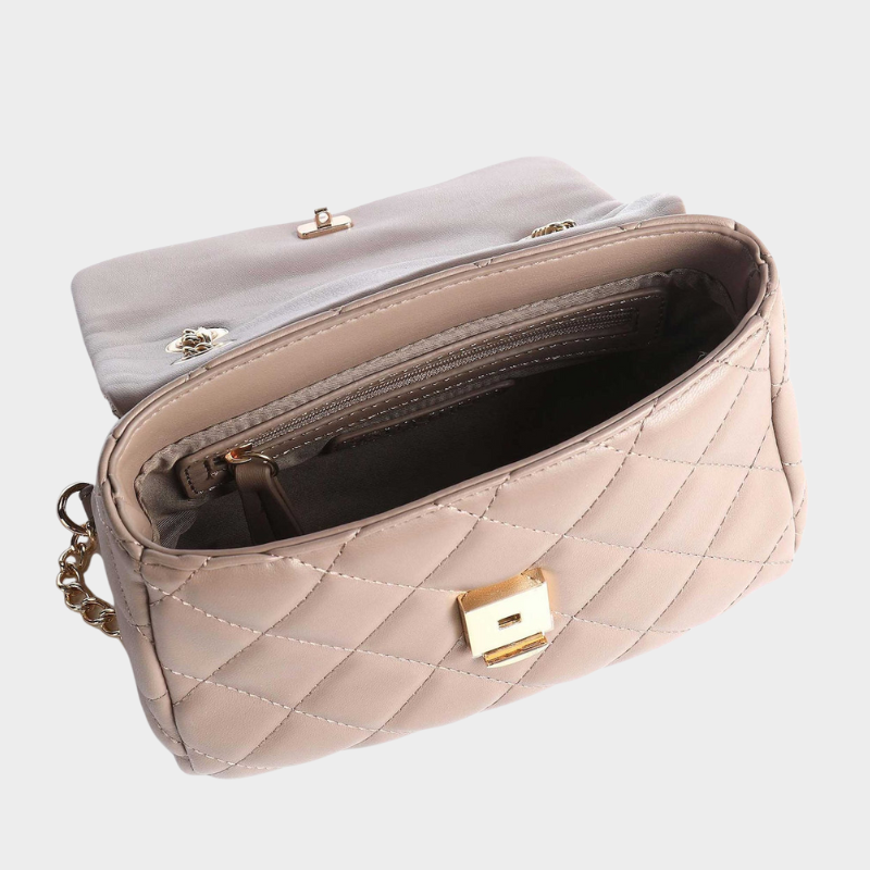 Γυναικεία τσάντα χειρός σε στυλ Flap Bag, με καπιτονέ υφή και το λογότυπο του brand στο μπροστινό μέρος.