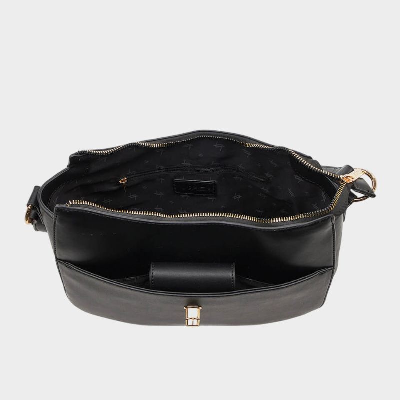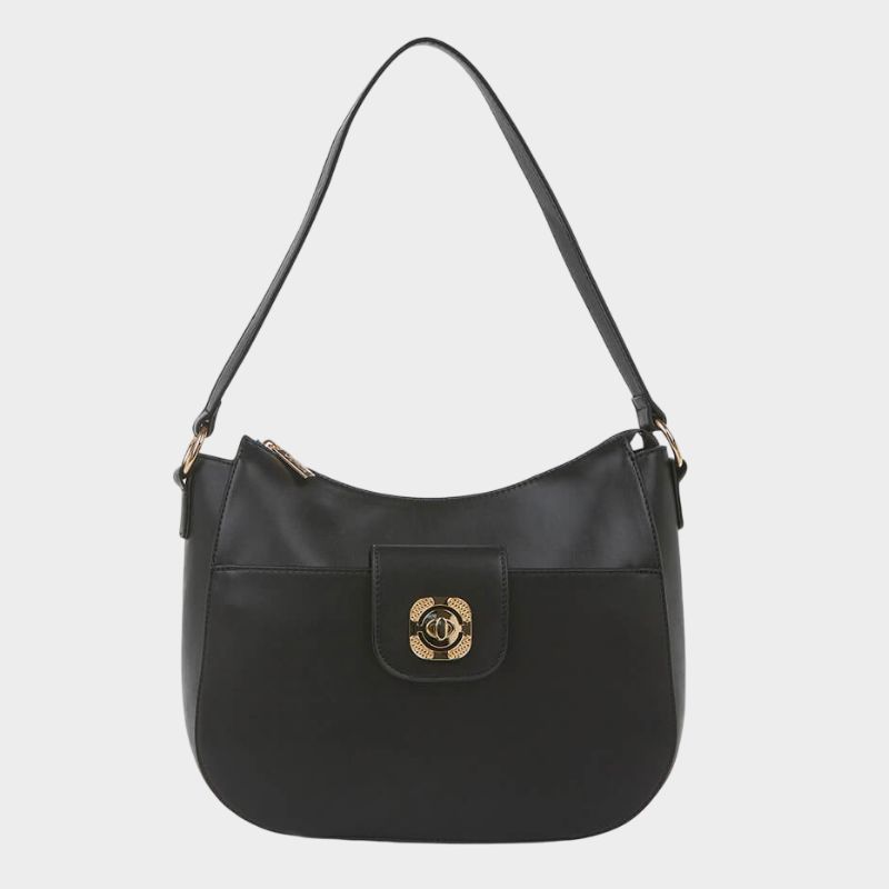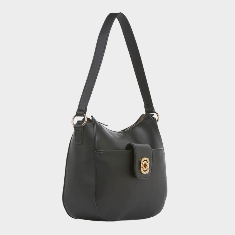 Μπροστινή θήκη με καπάκι και μεταλλικό διακοσμητικό κλείσιμο, πίσω τσέπη με φερμουάρ