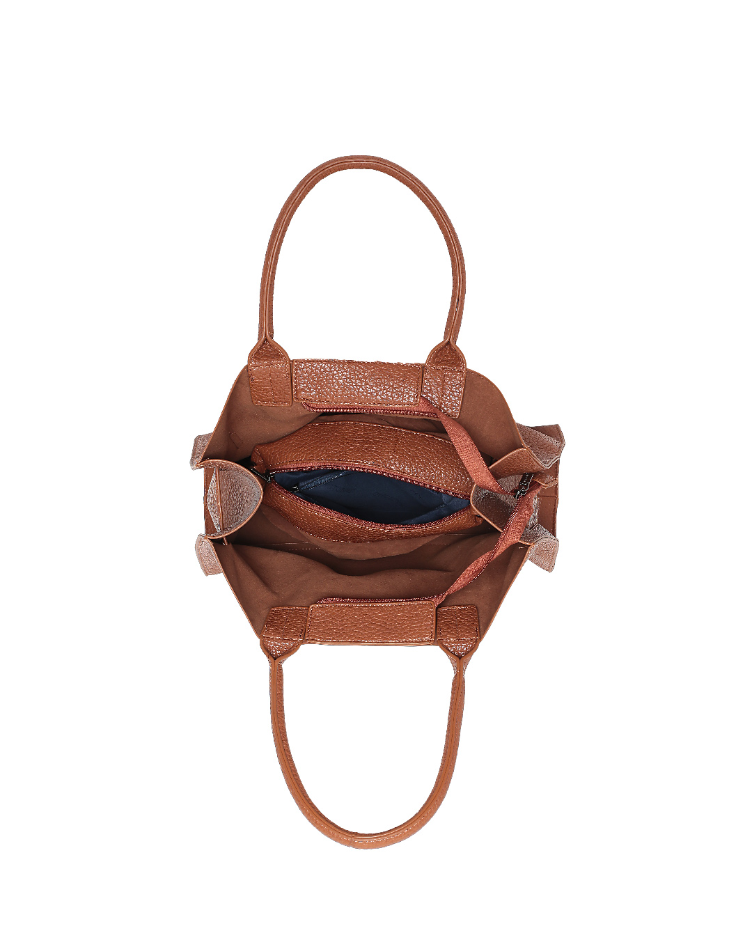 Τσάντα ώμου από υψηλής ποιότητας τεχνόδερμα.Διαθέτει μικρό εσωτερικό τσαντάκι.Αποτελείται από έναν κύριο χώρο που κλείνει με φερμουάρ.Διαθέτει ρυθμιζόμενο-αποσπώμενο λουράκι.