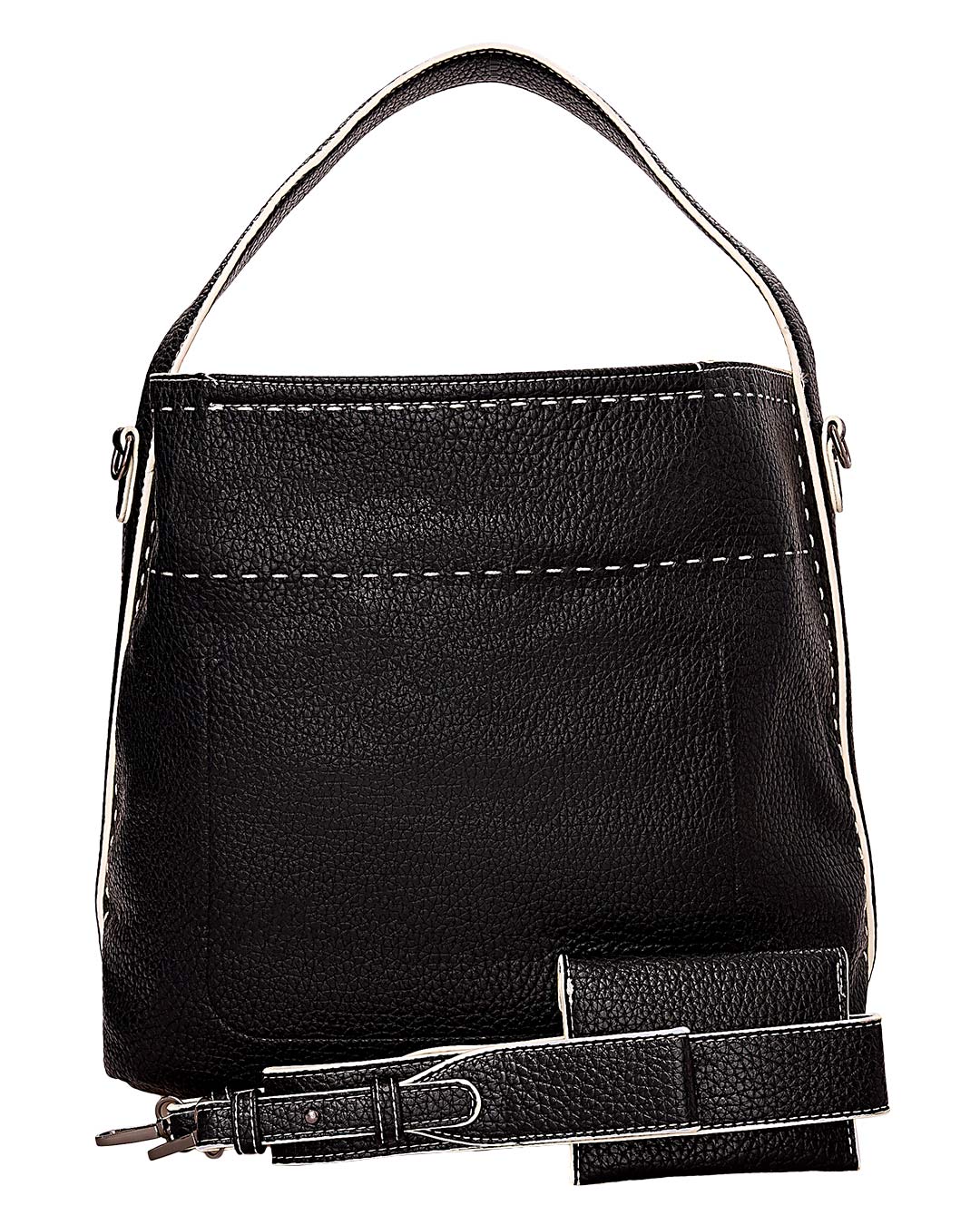 Τσάντα ώμου από υψηλής ποιότητας τεχνόδερμα.Αποτελείται από έναν κύριο χώρο που κλείνει με φερμουάρ.Εσωτερικά διαθέτει στην πίσω όψη βοηθητική τσέπη που κλείνει με φερμουάρ.Διαθέτει αποσπώμενο λουράκι.