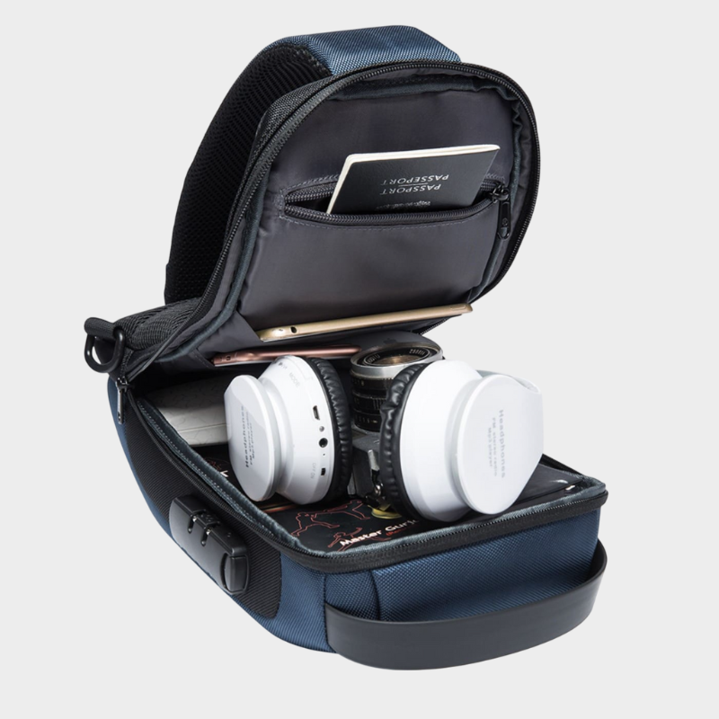 -USB θύρα και λουκέτο συνδυασμού-: Αυτή η τσάντα είναι εξοπλισμένη με θύρα φόρτισης USB για φόρτιση του τηλεφώνου σας οποτεδήποτε και οπουδήποτε. Στην δεξιά πλευρά υπάρχει μια αντικλεπτική κλειδαριά κωδικού, διατηρεί εύκολα τα πράγματα σας με ασφάλεια , λειτουργεί καλά σε εξωτερικούς χώρους. Διαθέτει υψηλής ποιότητας χειρολαβή που σας απαλλάσσει τους ώμους σε περιπτωση που θέλετε να το κρατήσετε δια χειρός.
