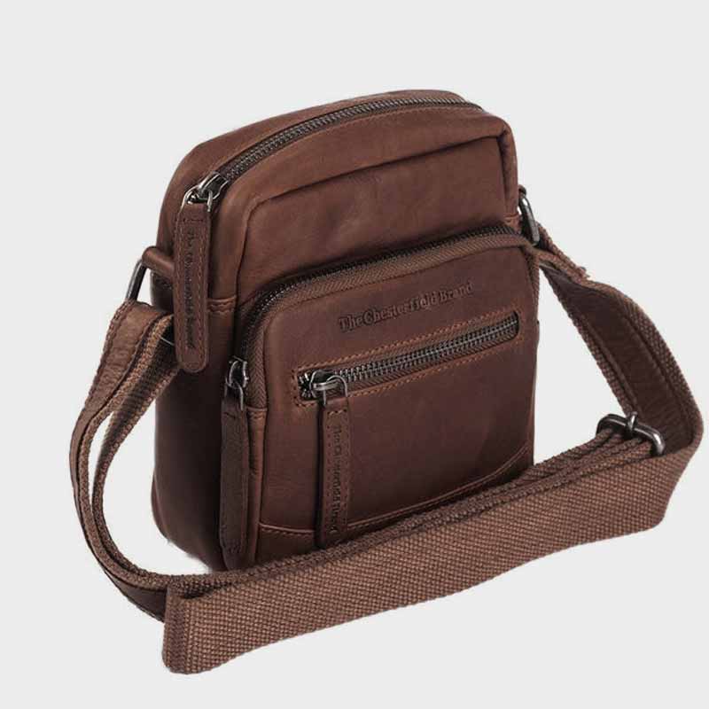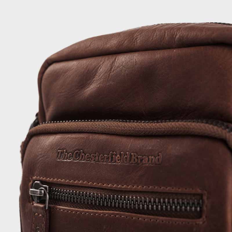 Τσαντάκι χιαστί της Chesterfield Brand κατασκευασμένο από γνήσιο δέρμα σε καφέ χρώμα.
