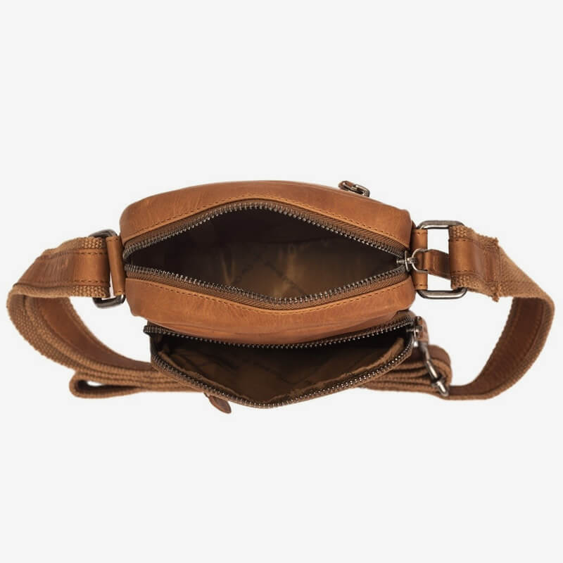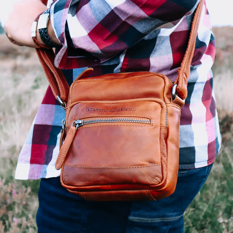 Τσαντάκι χιαστί της Chesterfield Brand κατασκευασμένο από γνήσιο δέρμα σε καφέ χρώμα.