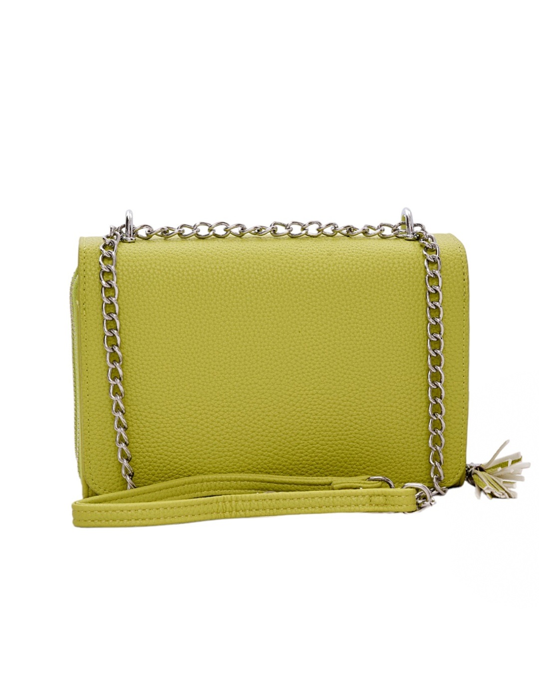 Τσαντάκι χιαστί από υψηλής ποιότητας τεχνόδερμα.Αποτελείται από έναν κύριο χώρο που κλείνει με φερμουάρ και έπειτα με περίτεχνο κούμπωμα.Επίσης διαθέτει λουράκι αλυσίδα.