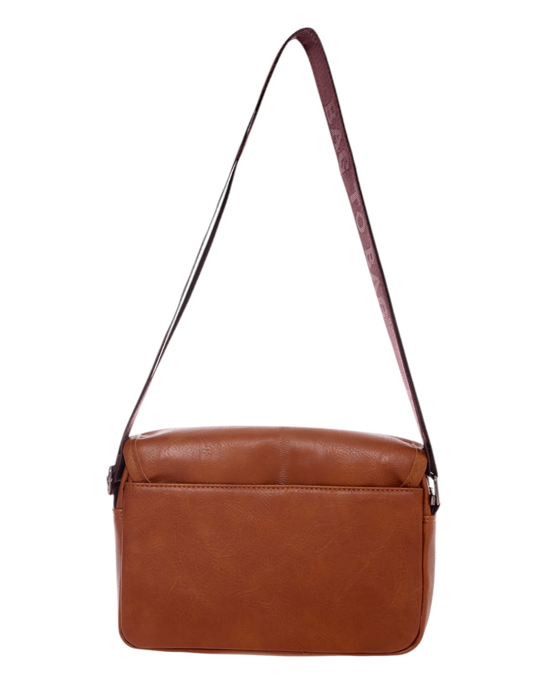 Τσαντάκι χιαστί-χειρός από υψηλής ποιότητας τεχνόδερμα. Αποτελείται από έναν ενιαίο κύριο χώρο που κλείνει με φερμουάρ και καπάκι. Εσωτερικά διαθέτει στην πίσω όψη μια βοηθητική θήκη που κλείνει με φερμουάρ. Διαθέτει ρυθμιζόμενο λουράκι.