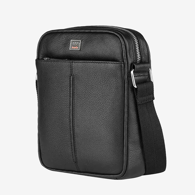 Τσαντάκι χιαστί της Auto Set από γνήσιο δέρμα και μεταλλικό λογότυπο Audi στο μπροστινό μέρος.