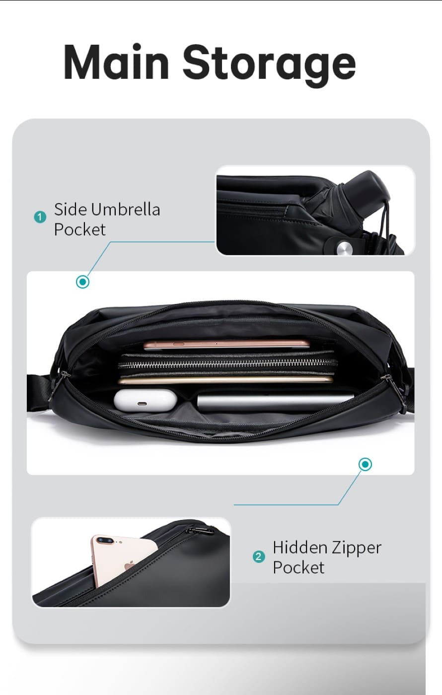 – Πολυχρηστική τσάντα-: Κρατήστε τα χέρια σας ελεύθερα αλλά χωρίς το μεγαλύτερο μέρος ενός κανονικού σακιδίου. Είναι κατάλληλο για όλες τις περιπτώσεις, όπως ταξίδια, πεζοπορία, ποδηλασία . Αυτή η τσάντα από πολυεστέρα έχει διάφορους τρόπους μεταφοράς, μπορεί να χρησιμοποιηθεί ως τσάντα στήθους, σακίδιο πλάτης, τσάντα ώμου ή τσάντα μέσης.