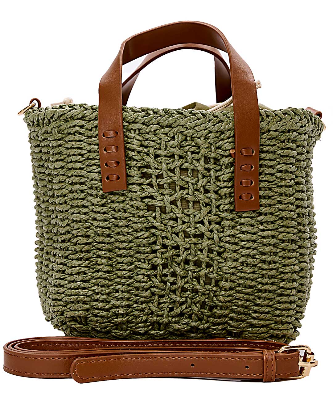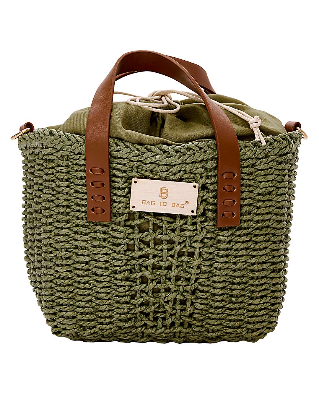 Τσαντάκι ψάθινο χειρός CN23128 - Πράσινο