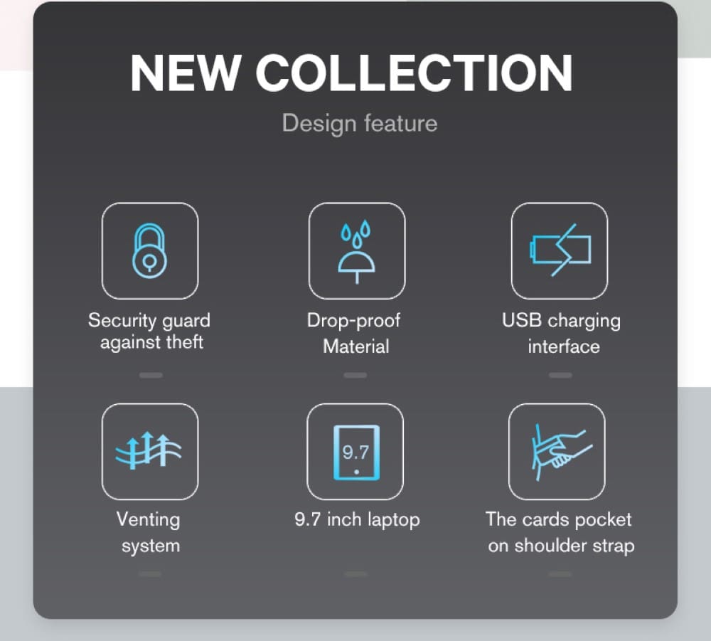 -Εσωτερική δομή-: Η κύρια τσέπη μπορεί να χωρέσει 1 μπλουζάκι ή ένα βιβλίο Β5 ή μία διπλωμένη ομπρέλα ή ένα μπουκάλι νερού 500ml, εσωτερικό διαμέρισμα ipad 9,7 ιντσών . Υπάρχουν δύο υποδοχές για καθημερινά είδη πρώτης ανάγκης που μπορείτε να φτάσετε γρήγορα , στο εσωτερικό υπάρχει επίσης μια τσέπη με φερμουάρ για πολύτιμα πράγματα. Δυο υποδοχές στο εσωτερικό βοηθούν στην οργάνωση των πραγμάτων, δυο κρυφές τσέπες στο μπροστινό εξωτερικό κομμάτι της τσάντας.
