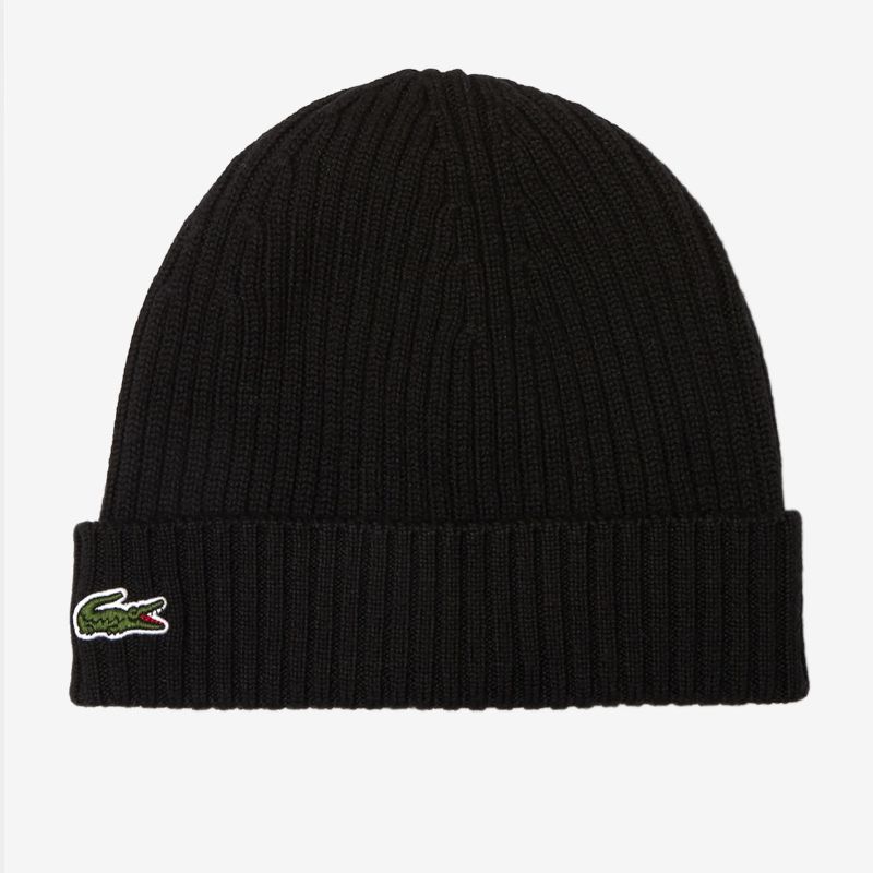 Σύνθεση: 100% μαλλί Χρώμα: Μαύρο Rib πλέξη Κεντημένο λογότυπο Lacoste στο πλάι