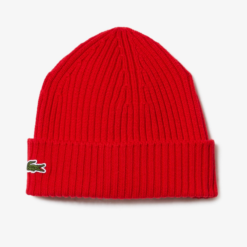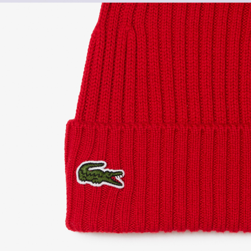 Σύνθεση: 100% μαλλί Χρώμα: Κόκκινο Rib πλέξη Κεντημένο λογότυπο Lacoste στο πλάι