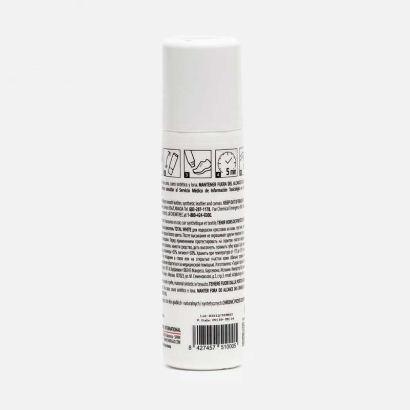 Το Sneakers Total White είναι μια λευκή υγρή κρέμα, με σφουγγάρι απλικατέρ για εύκολη εφαρμογή του προϊόντος. Με αυτό το προϊόν μπορείτε να καλύψετε γρατσουνιές, κάθε είδους βρωμιά και να επιστρέψετε το αρχικό λευκό στα αθλητικά σας παπούτσια. Είναι γρήγορη απορρόφηση, μετά από 5 λεπτά στεγνώματος, το προϊόν δεν λερώνει.