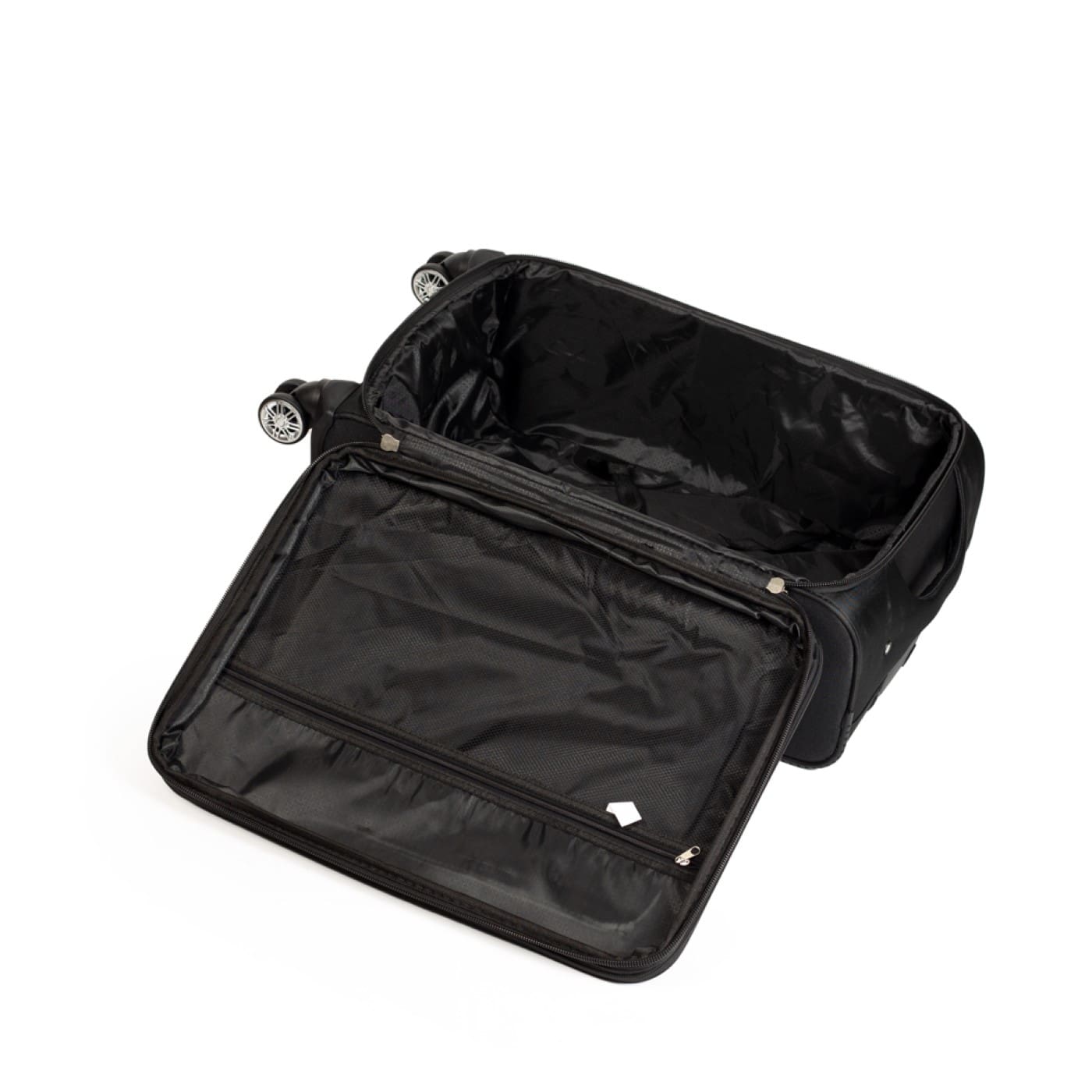– Υφασμάτινη επένδυση για πρόσθετη προστασία από γρατσουνιές, επενδυμένη με προστατευτικά στις γωνίες της βαλίτσας και στο πλάι, εσωτερικός οργανωτής 600D-πολυεστέρα με 3 τσέπες με φερμουάρ για εύκολη αποθήκευση μικρότερων αντικειμένων.