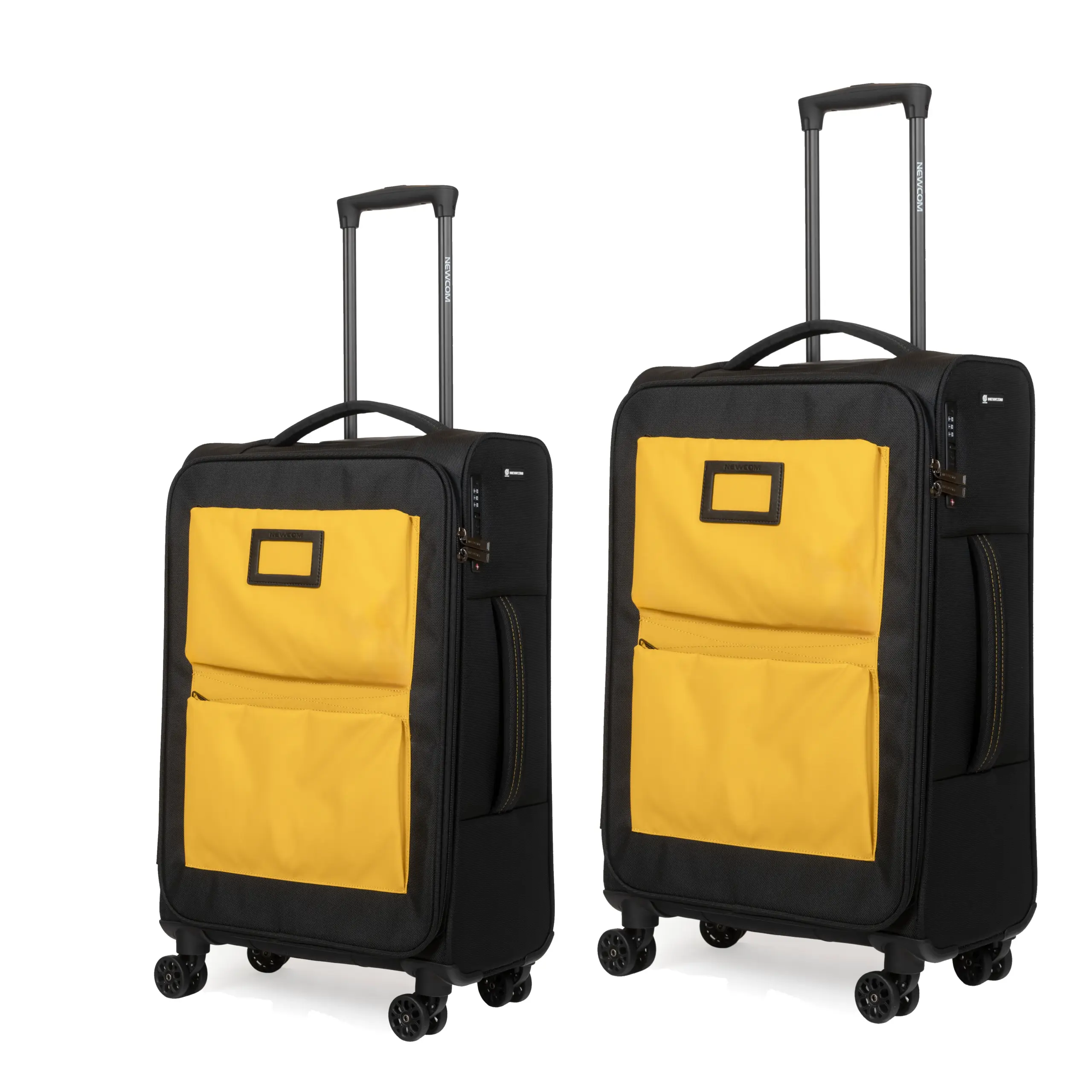 Σετ βαλίτσες υφασμάτινες μεσαία (2,5 kg) και μεγάλη (3,1 kg). Ελαφριές, ανθεκτικές, με ρόδες 360° και κλειδαριά TSA για απόλυτη ασφάλεια. Ιδανικές για ταξίδια 20+ κιλών και πολυήμερες διακοπές.