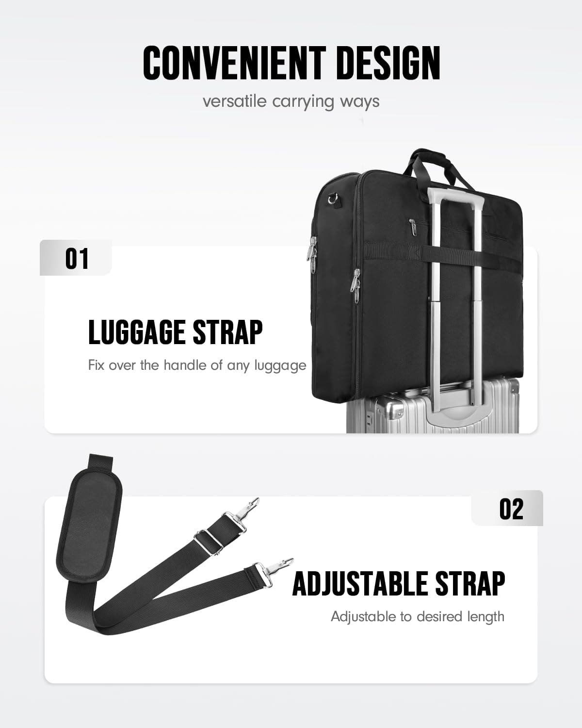 – ΕΠΙΠΛΕΟΝ ΧΩΡΟΣ & ΠΟΛΛΑΠΛΕΣ ΤΣΕΠΕΣ: Φορέστε την τσάντα ρούχων με προσεγμένες θήκες και πολλαπλές τσέπες. Δύο κύριες θήκες σχεδιασμένες για μεταφορά κοστουμιών, στολών, παλτών, φορεμάτων. Πολλαπλές εσωτερικές τσέπες με φερμουάρ για γραβάτες, κάλτσες και μικρά αξεσουάρ. Μια ευρύχωρη εξωτερική τσέπη μπροστά και πίσω παρέχει εύκολη πρόσβαση σε ηλεκτρονικά και έγγραφα. Τα αντικείμενά σας μπορούν να βρουν τον αποκλειστικό τους χώρο, προωθώντας μια εμπειρία ταξιδιού χωρίς ακαταστασία.
